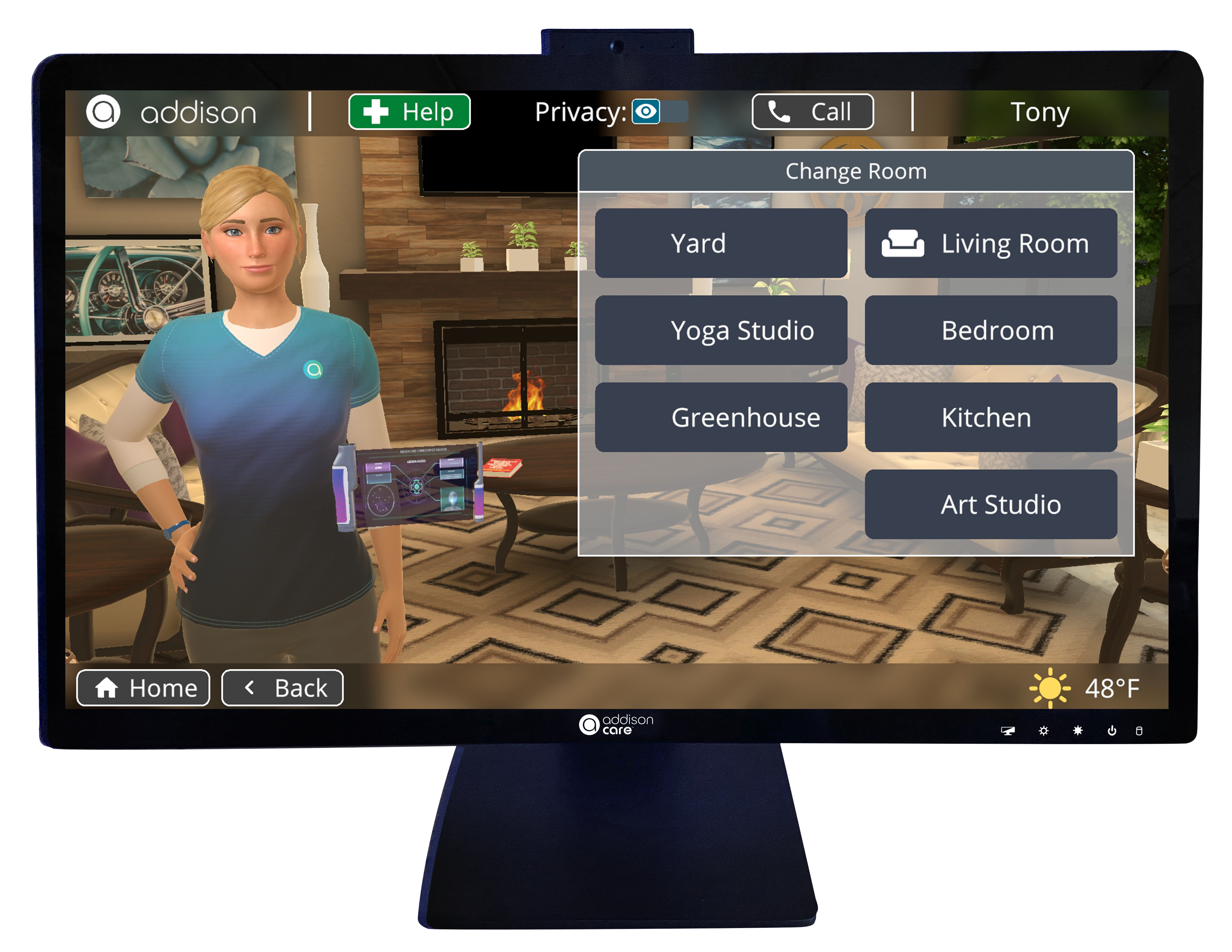 Provides physician on-demand, medication and vitals monitoring, and emergency response service.
